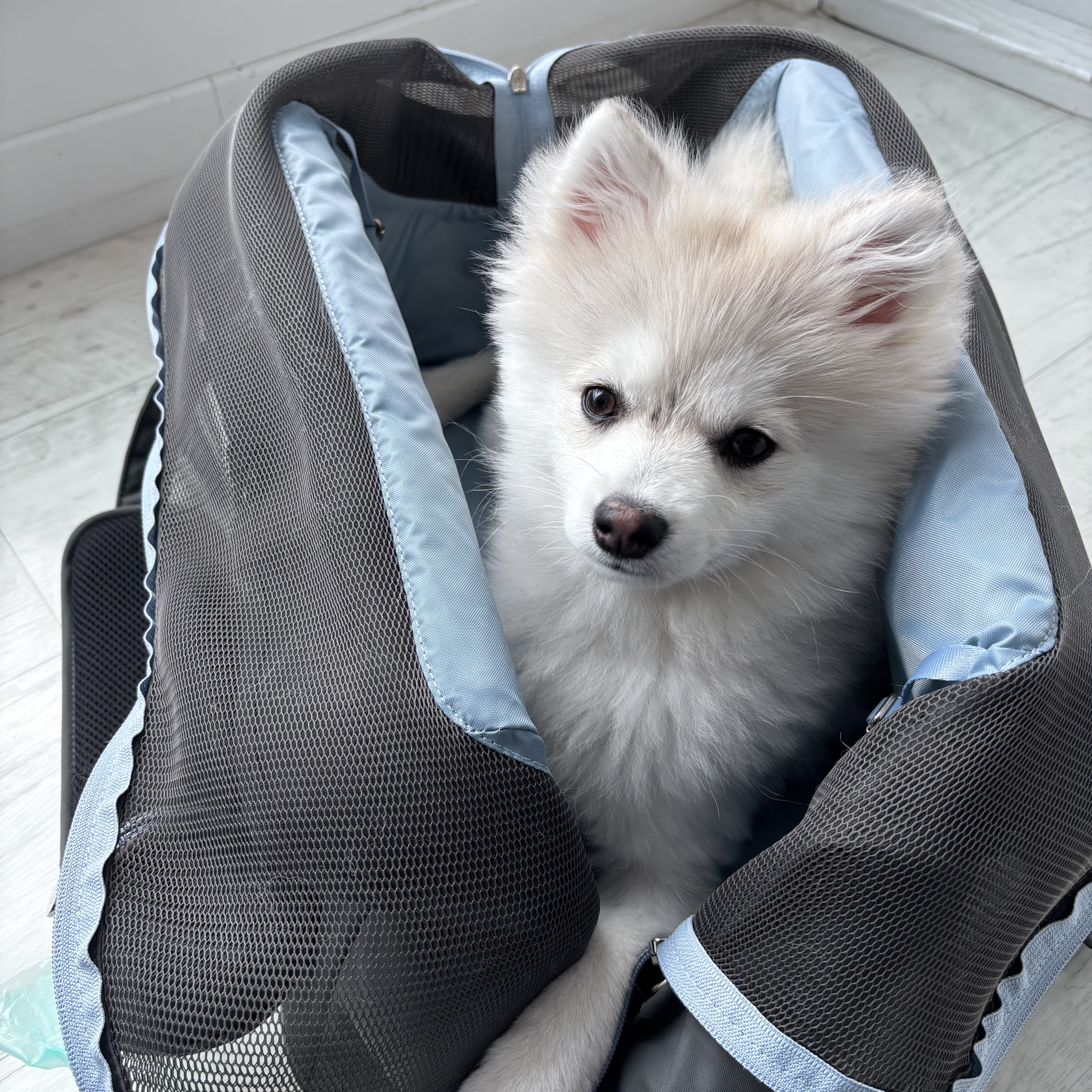 보통 이동 가방에 넣으면 불편해서 불안해하는 경우도 많은데, 안에서 편안하게 자리 잡더라고요.
