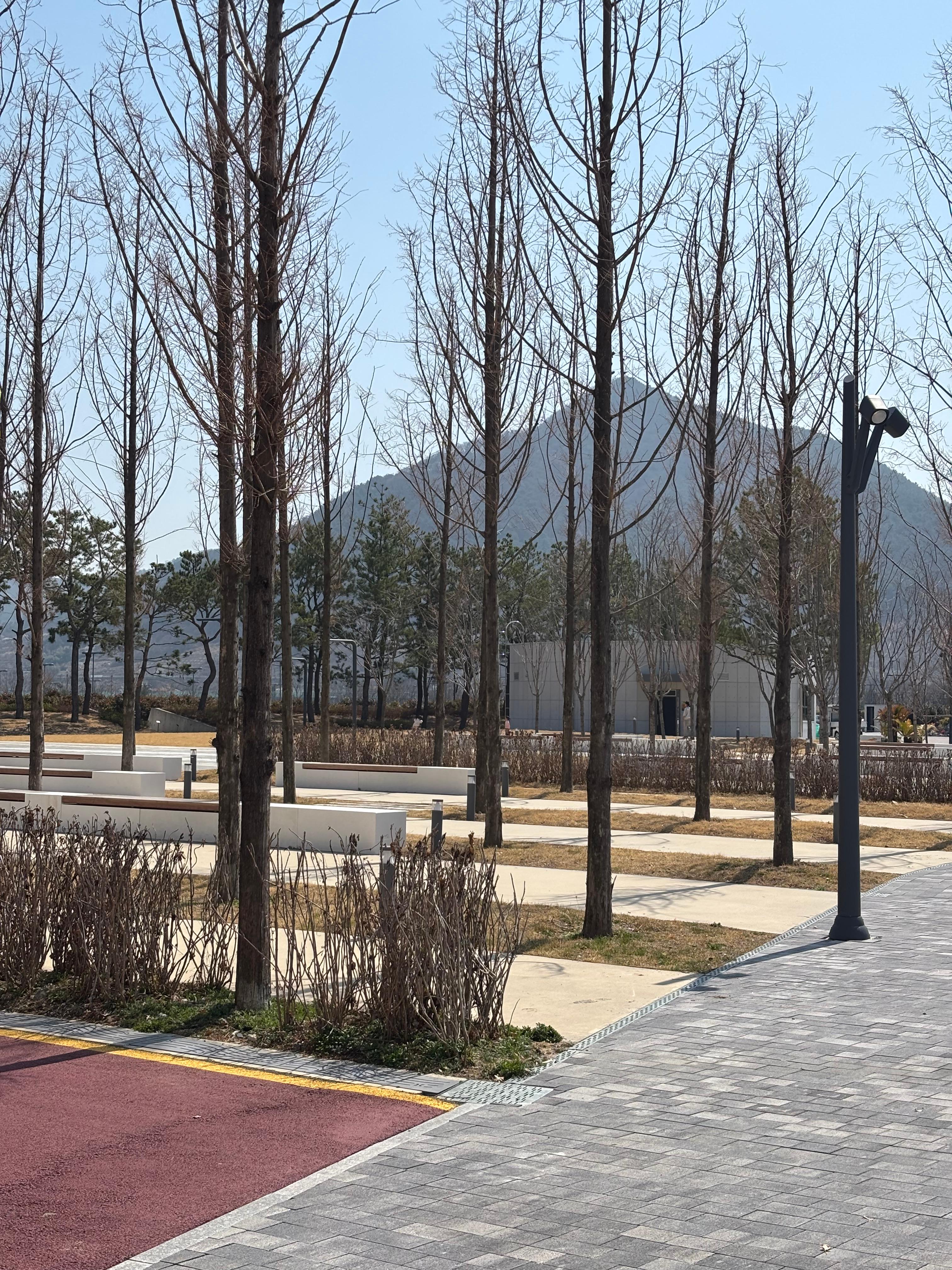 1. 넓은 잔디, 벤치, 반려견 배변 전용 쓰레기통 구비