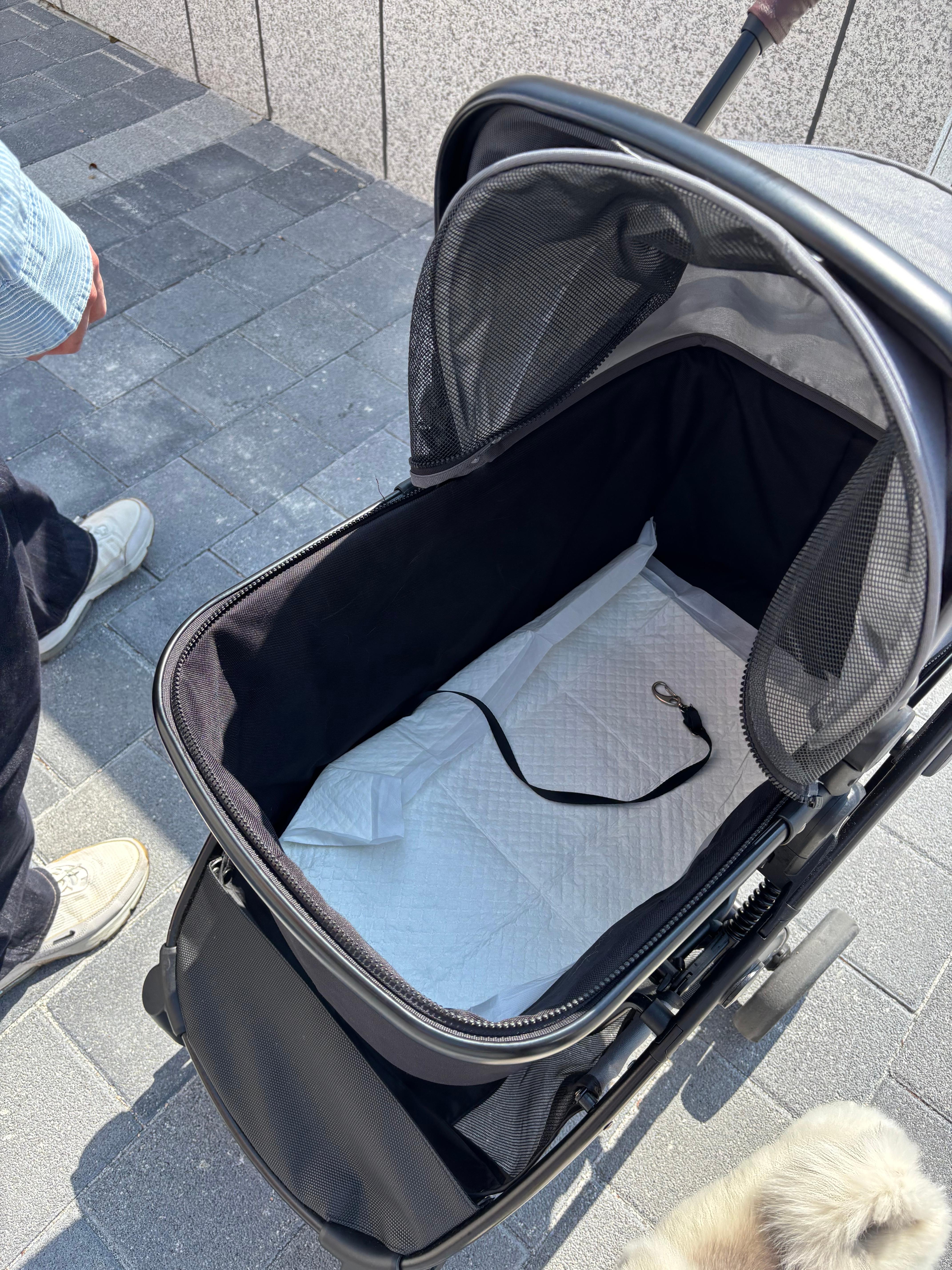 - 유모차 상태는 양호하고, 반려견이 안정적으로 앉거나 누울 수 있음