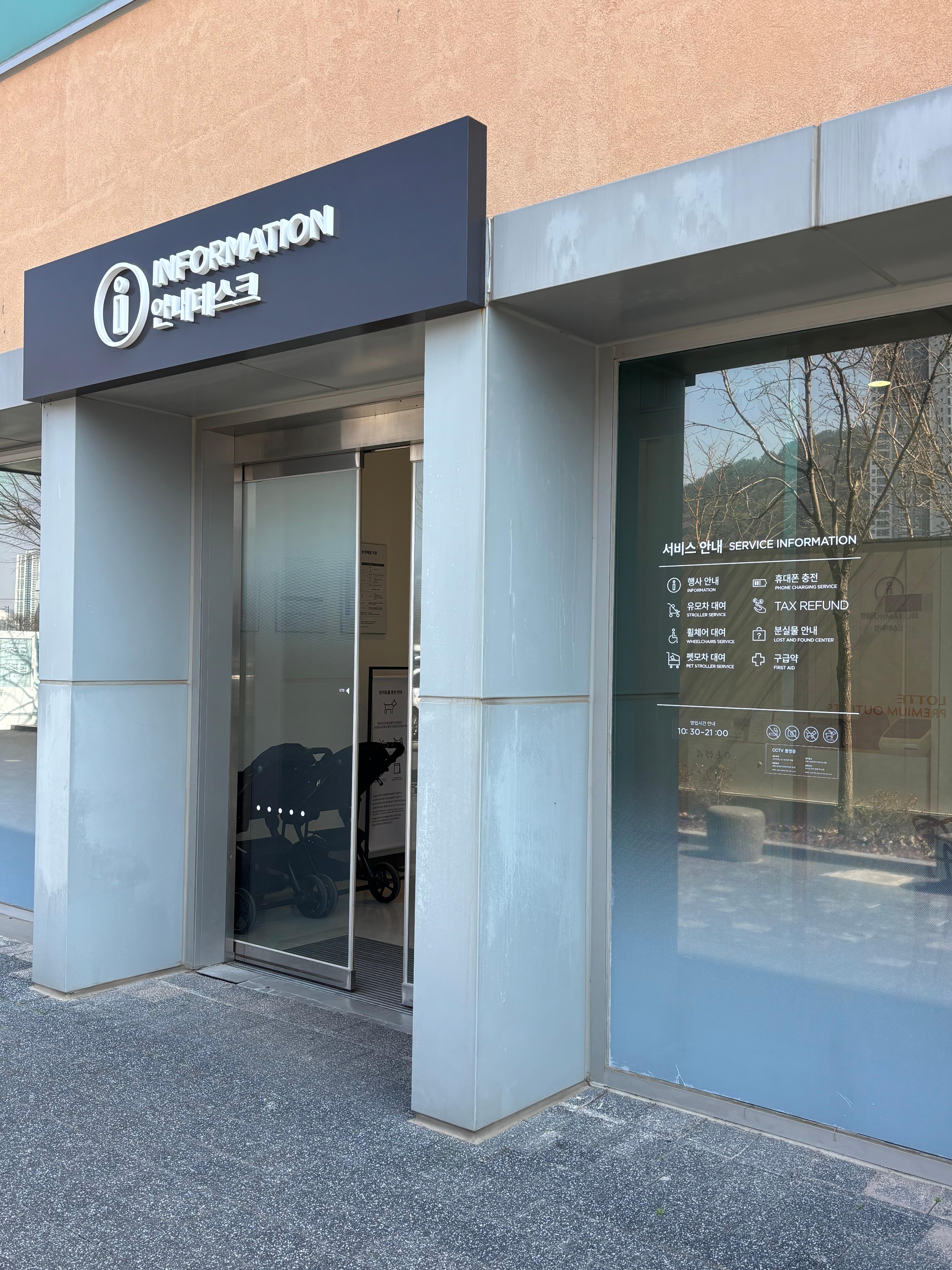 - 입장 직후 넓은 실내 로비 공간에서 '고객서비스센터' 간판을 확인하시면 됩니다