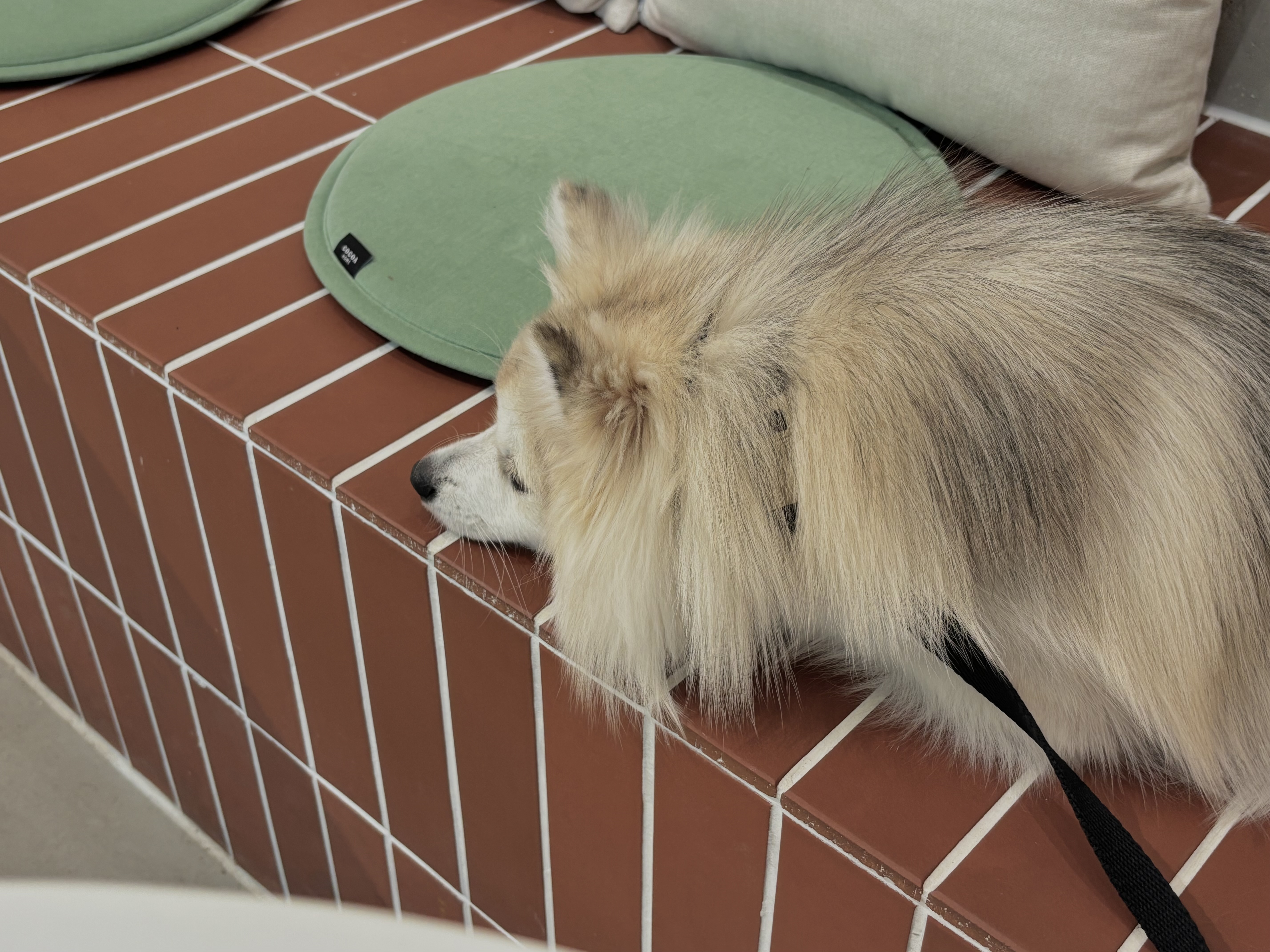 우리 수호도 매장 내부에서 편하게 쉬면서 여유로운 시간을 보낼 수 있었고 좌석 간격이 넓어 다른 손님들과도 크게 불편함이 없었어요.