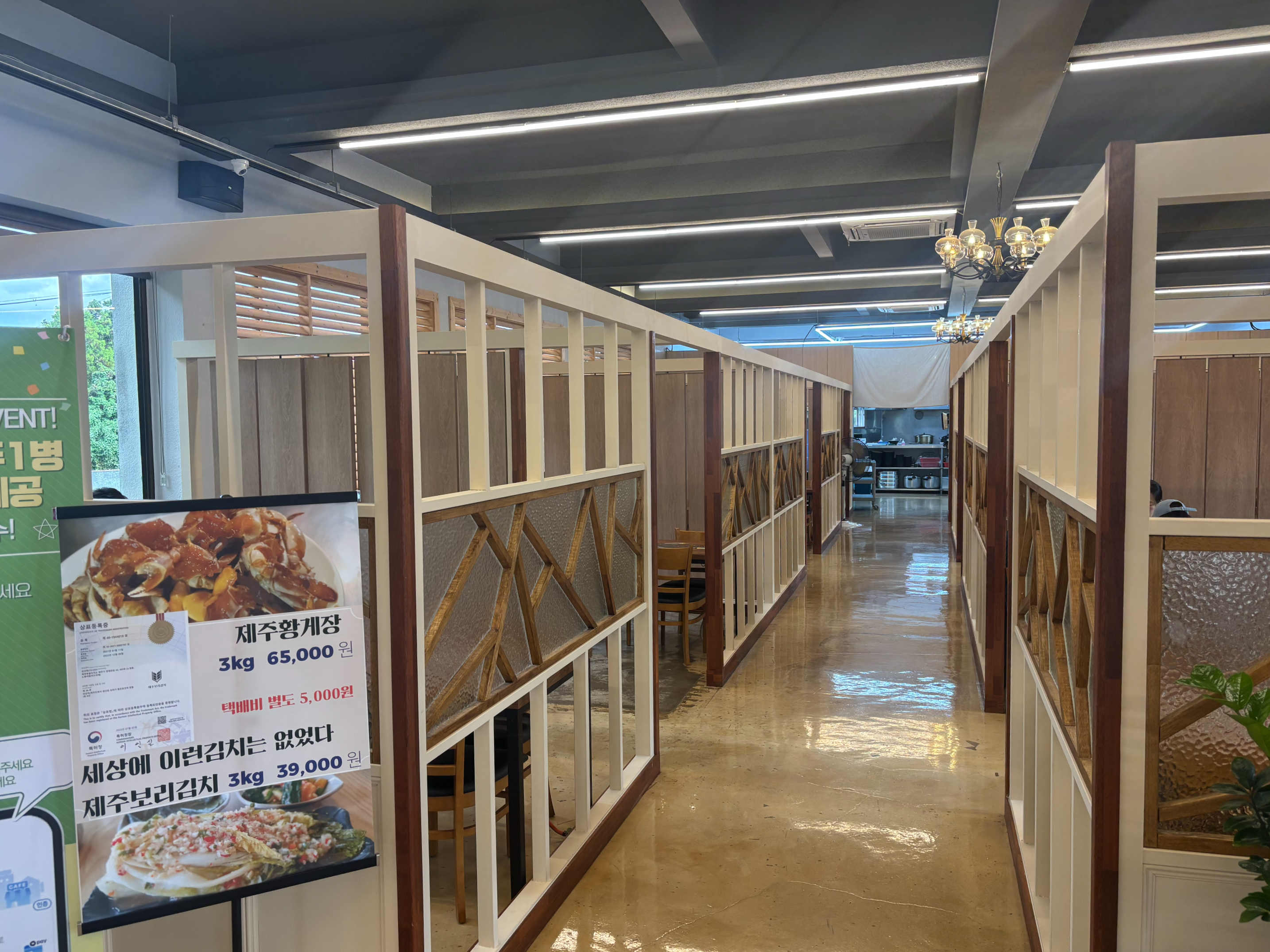 식당 내부는 테이블 간격이 넓고, 가벽이 설치된 룸형 구조라 주변 시선에 방해받지 않고 식사할 수 있었어요.