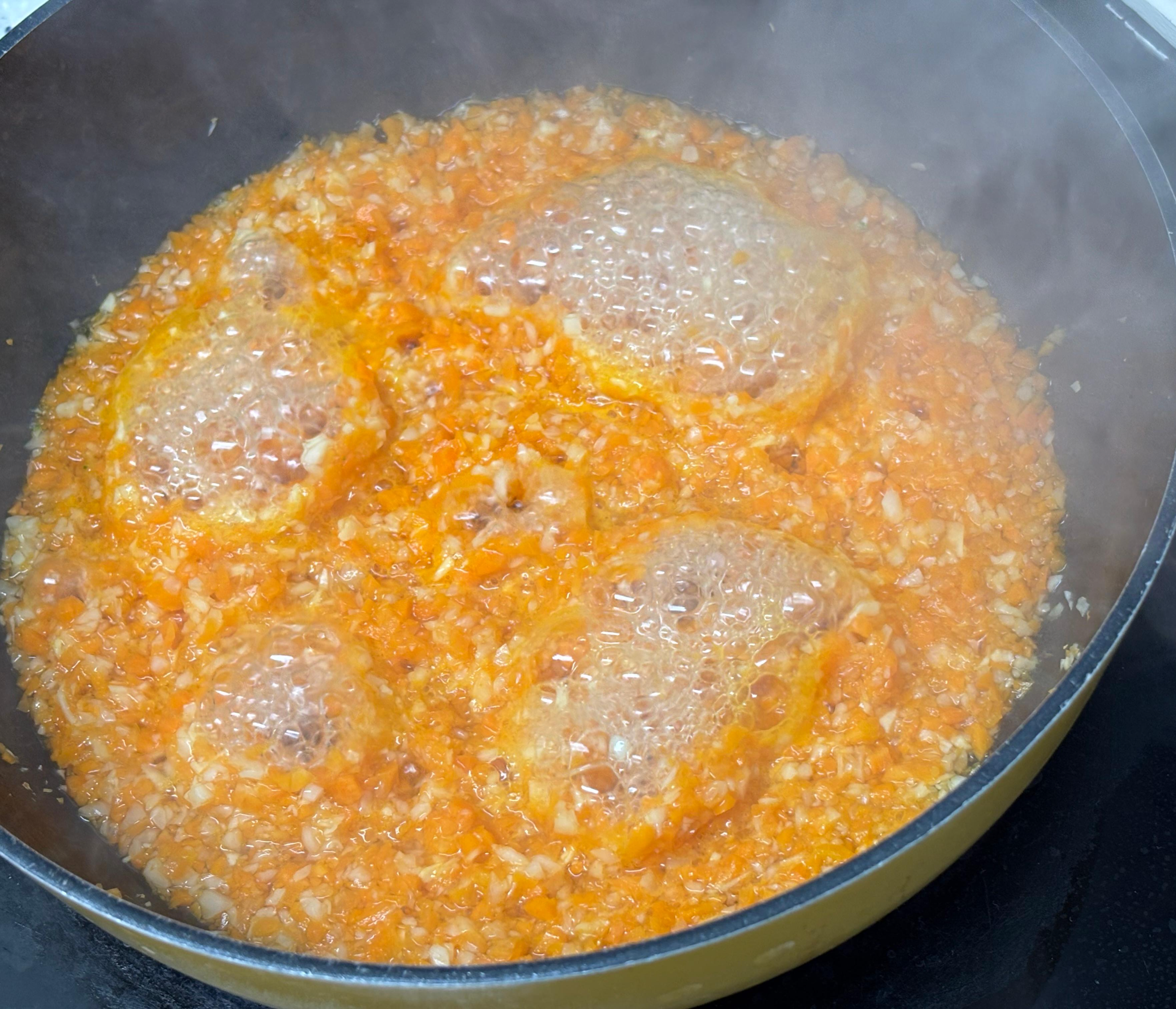 - 남은 브로콜리 삶은 물에 다진 당근과 양배추를 넣고 볶듯이 익혀서 영양 손실을 최소화했어요.