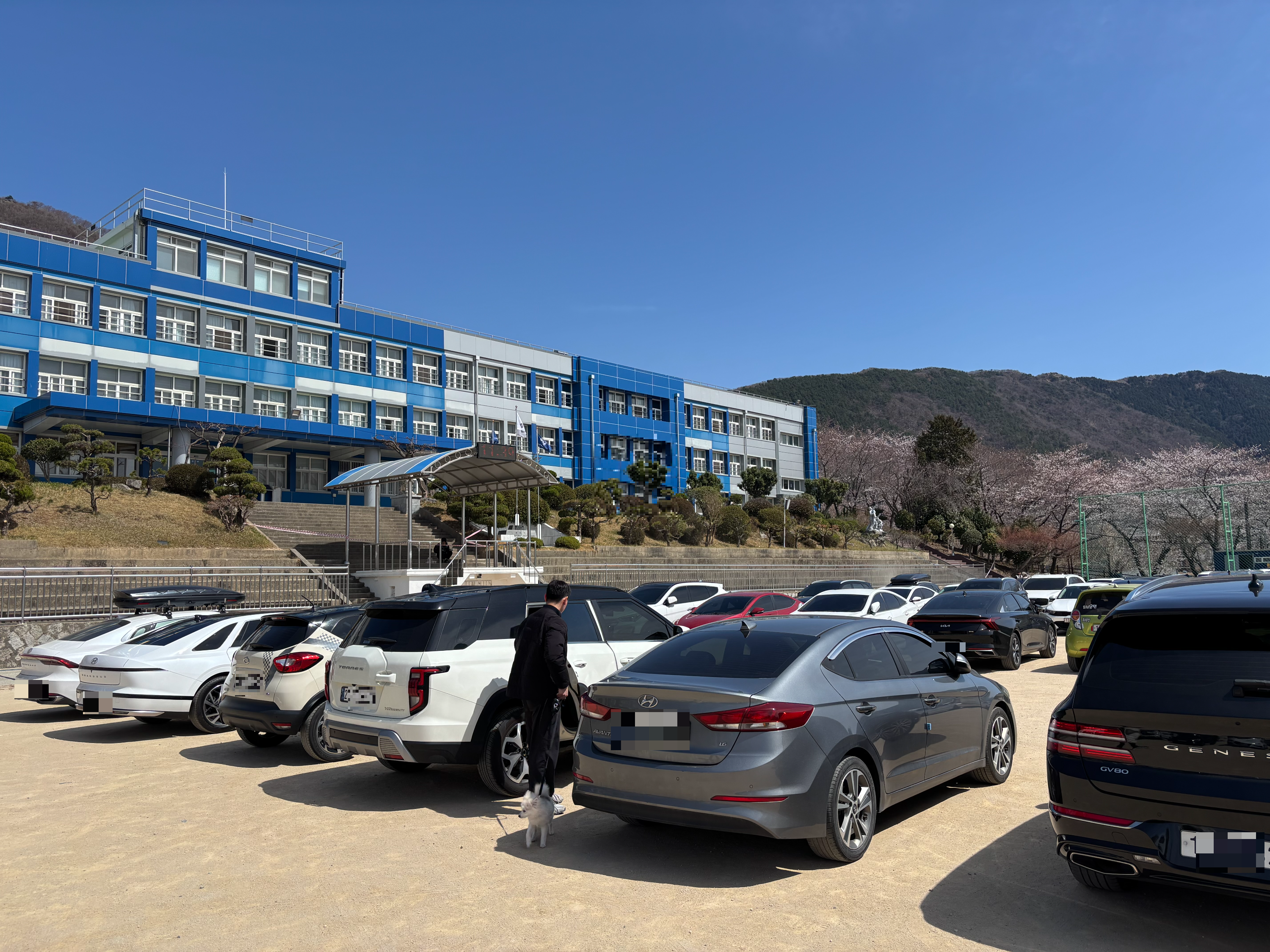 저희는 진해 남중학교 임시 주차장을 이용했어요.