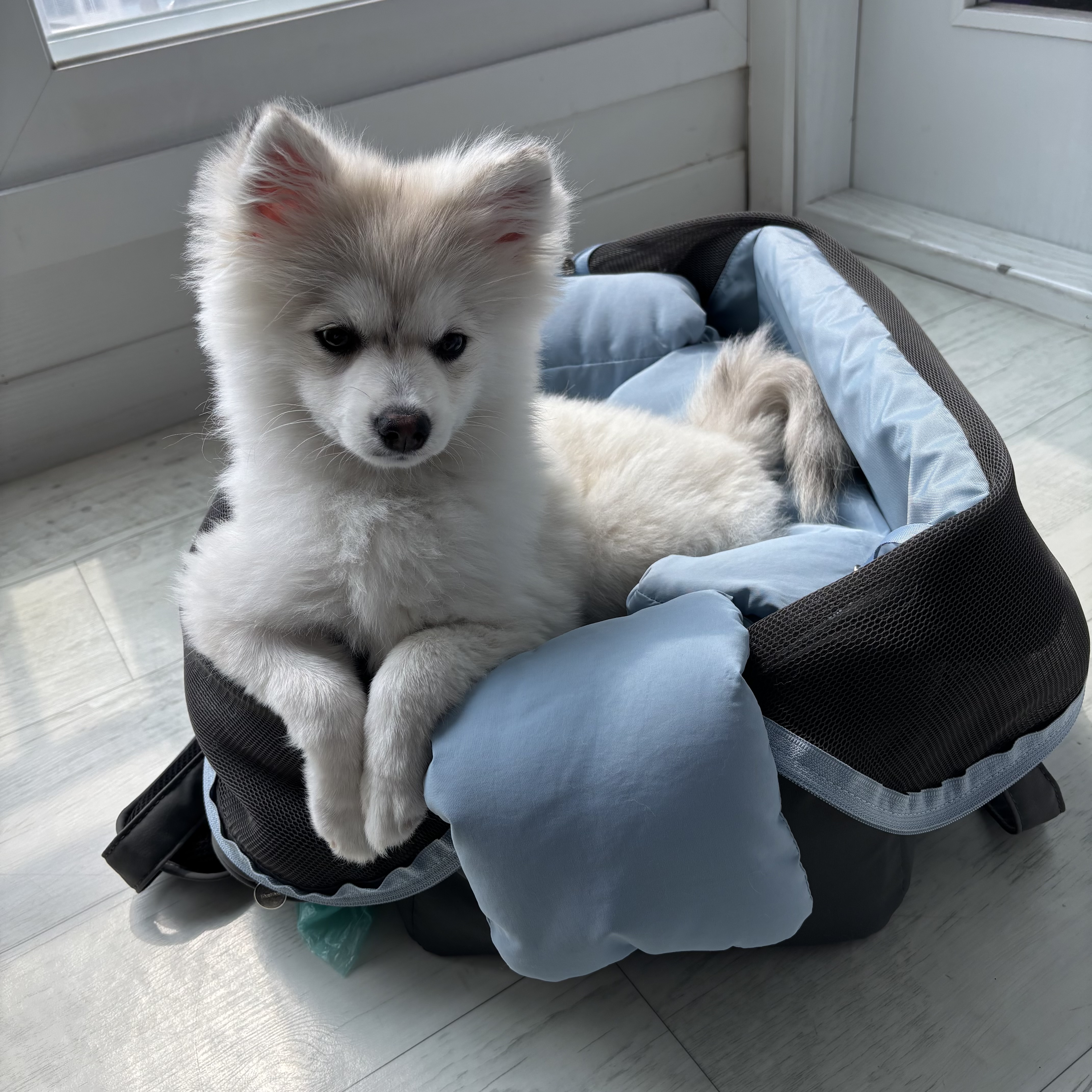 수호는 아직 6개월 차 3.2kg의 작은 폼스키라서 사실 M 사이즈도 괜찮았을 거예요.