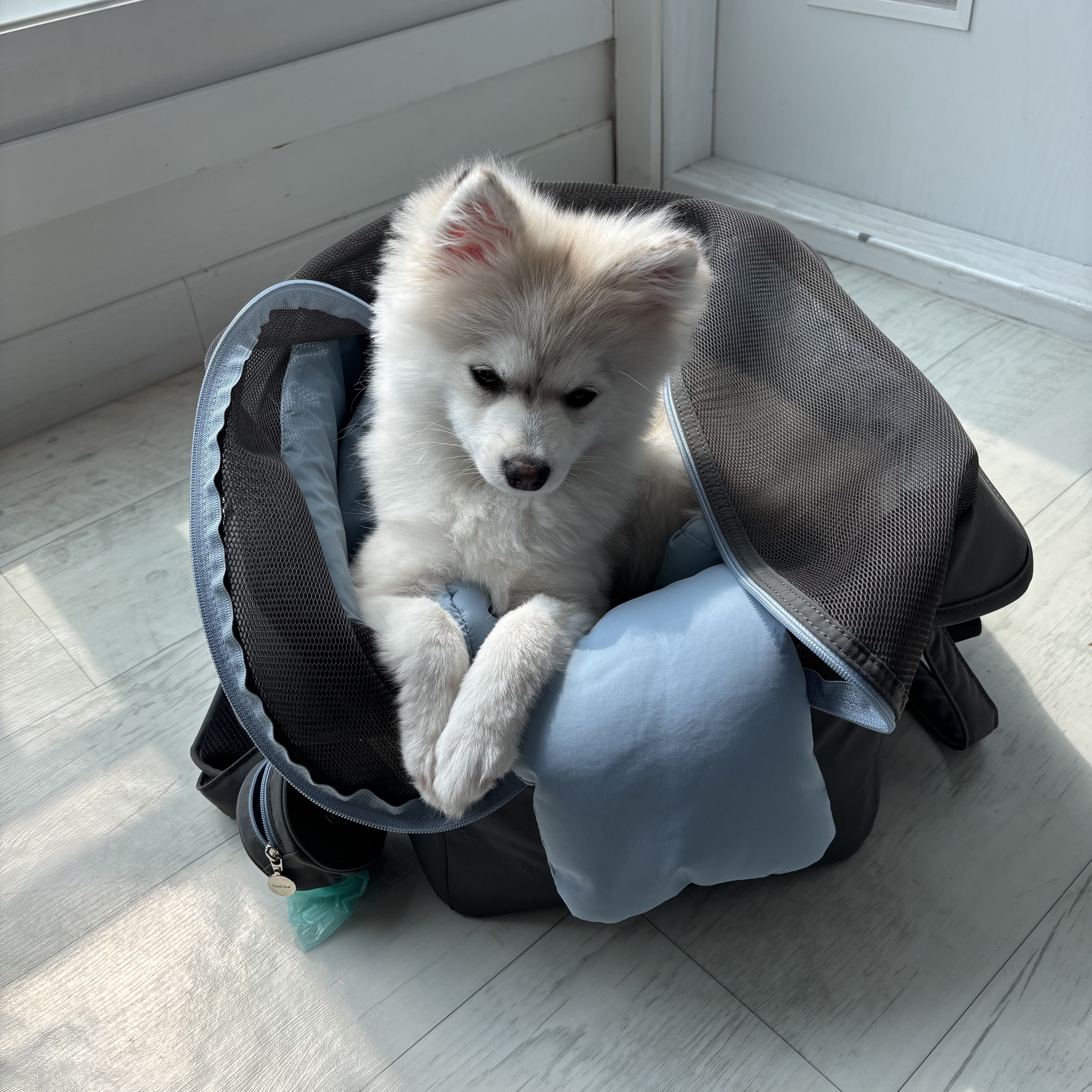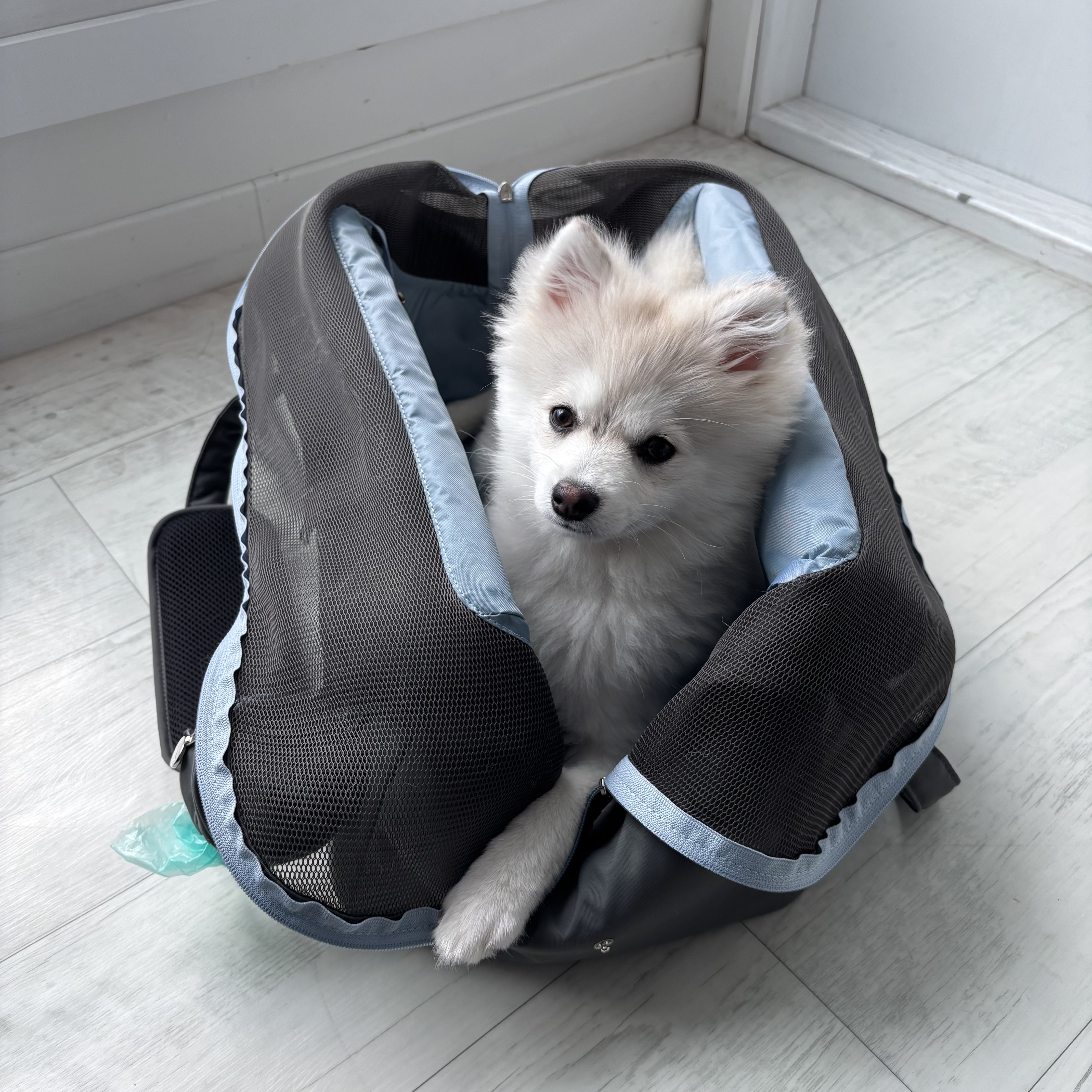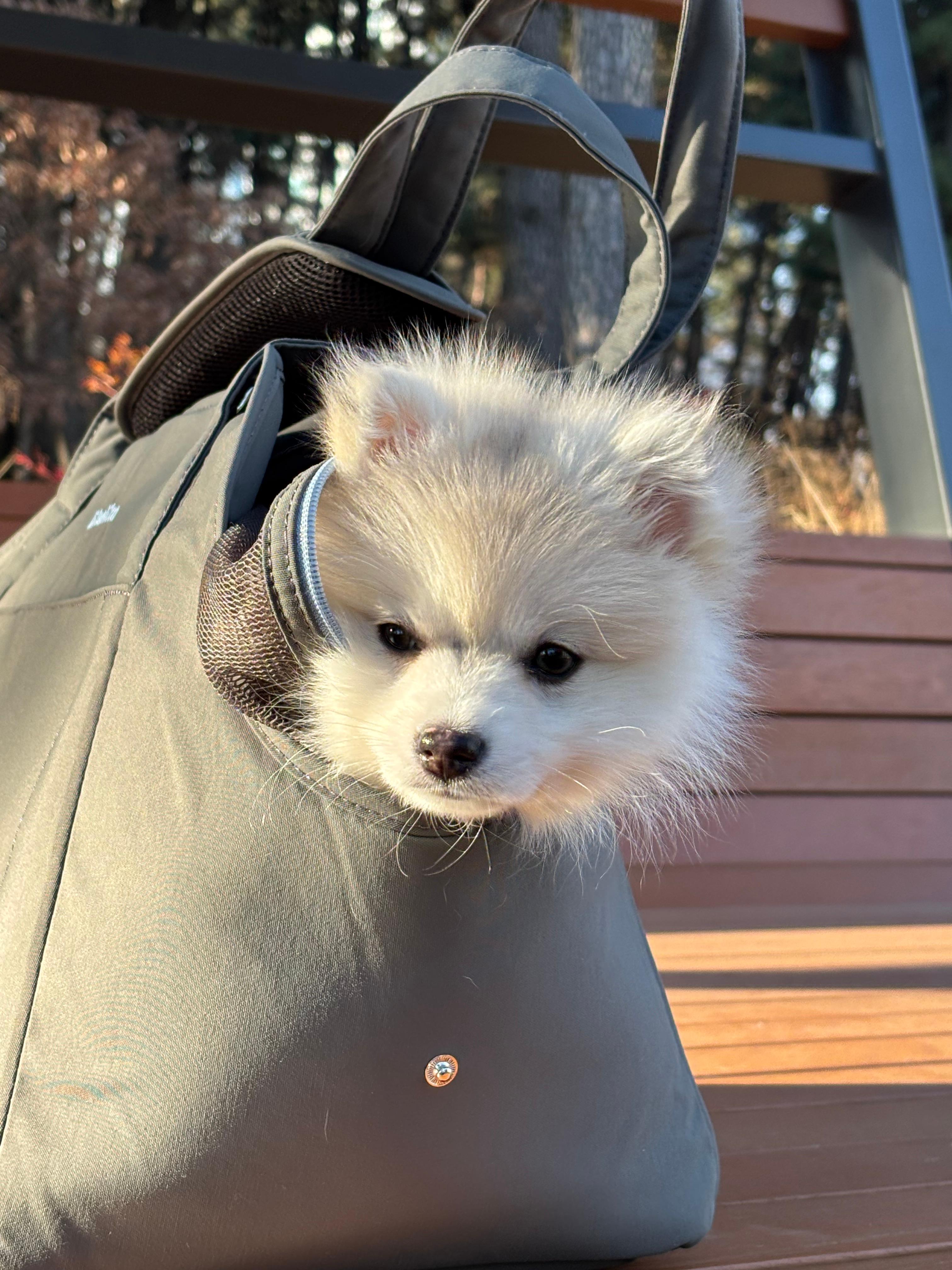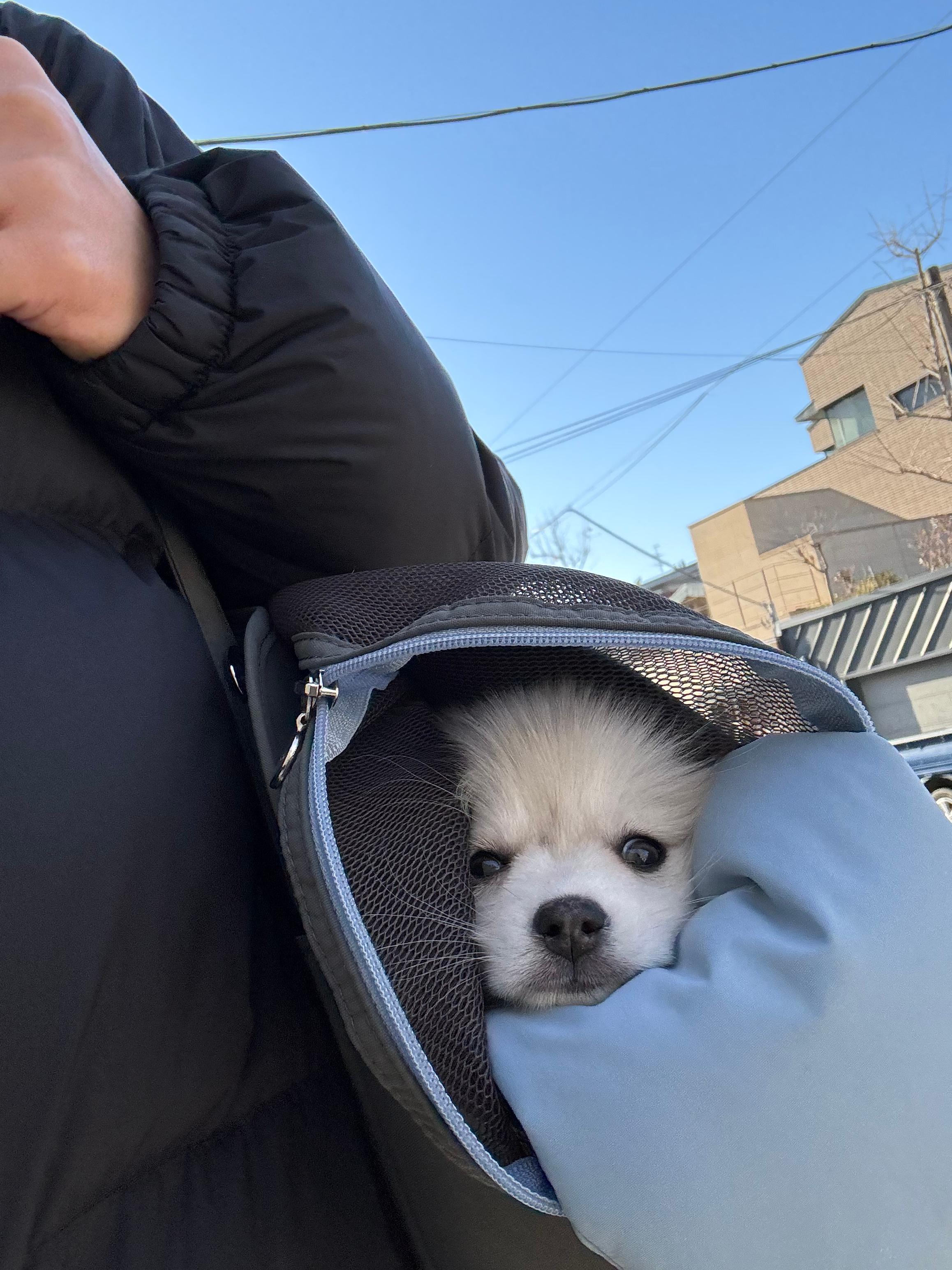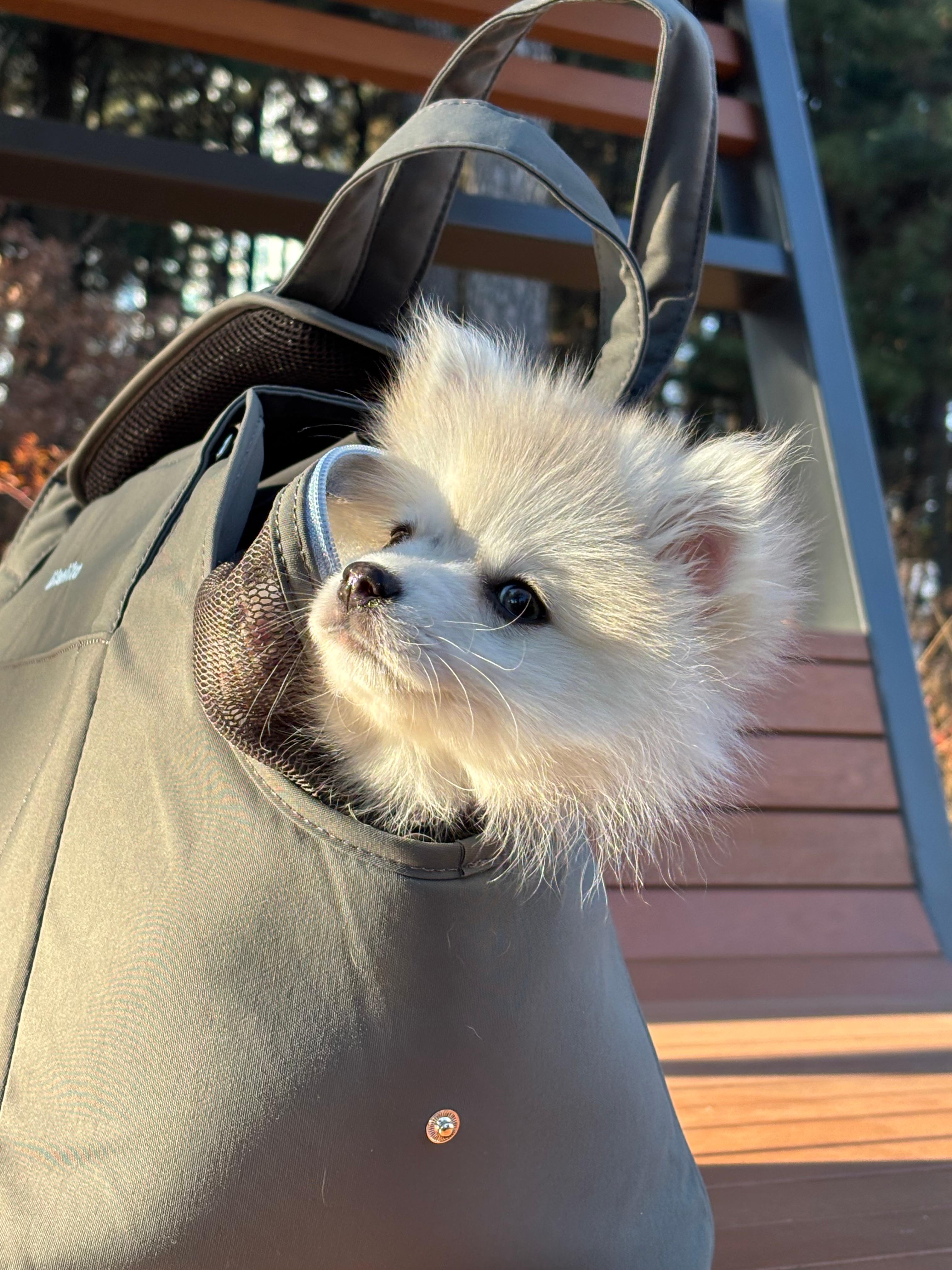 무엇보다 수호가 가방을 거부감 없이 스스로 들어갈 정도로 편안해하는 게 가장 만족스러웠어요!