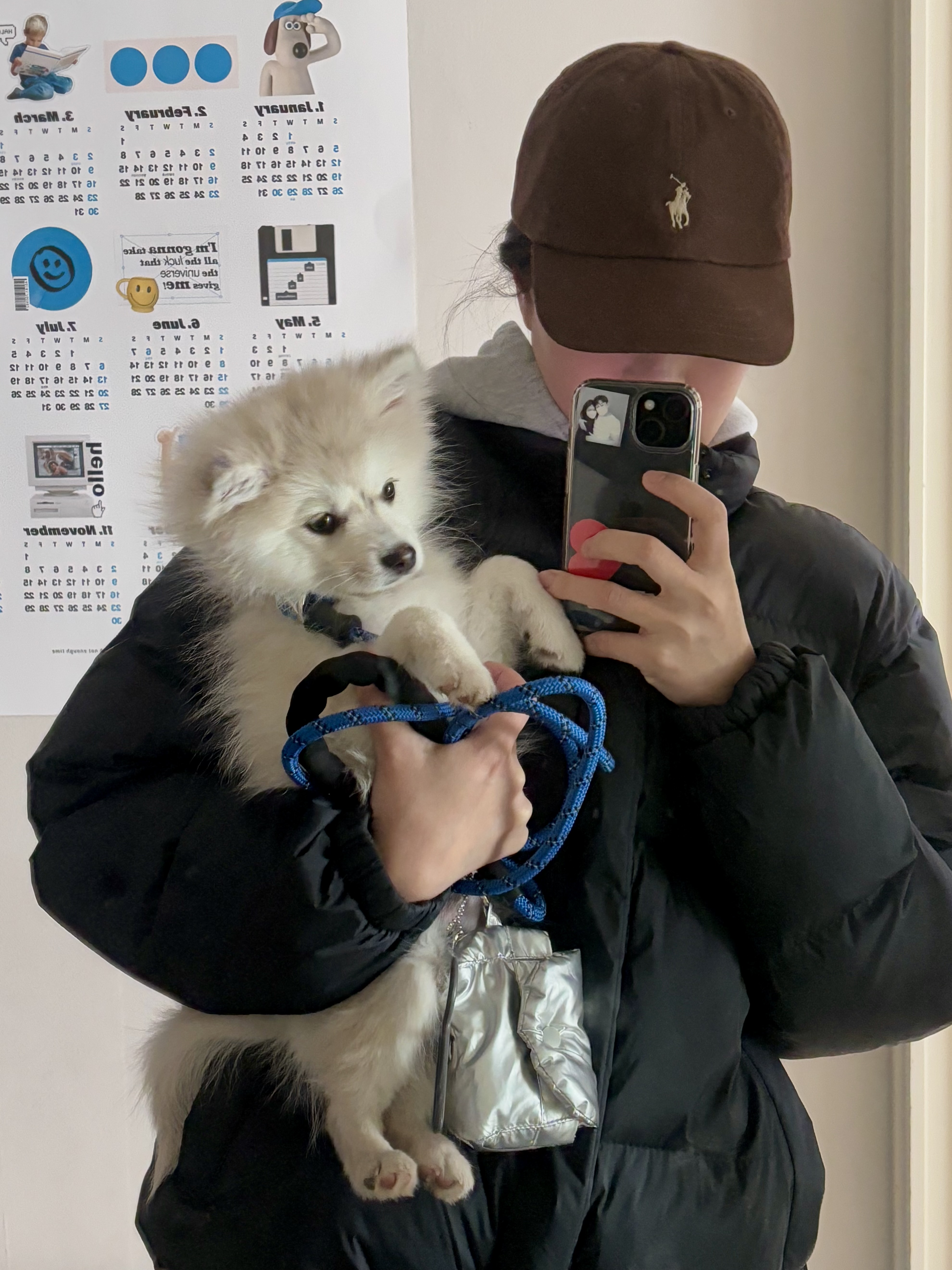아침에 급하게 나갈 땐 모자 푹 눌러쓰고 리드줄 하나만 딱 들고 나가는데,