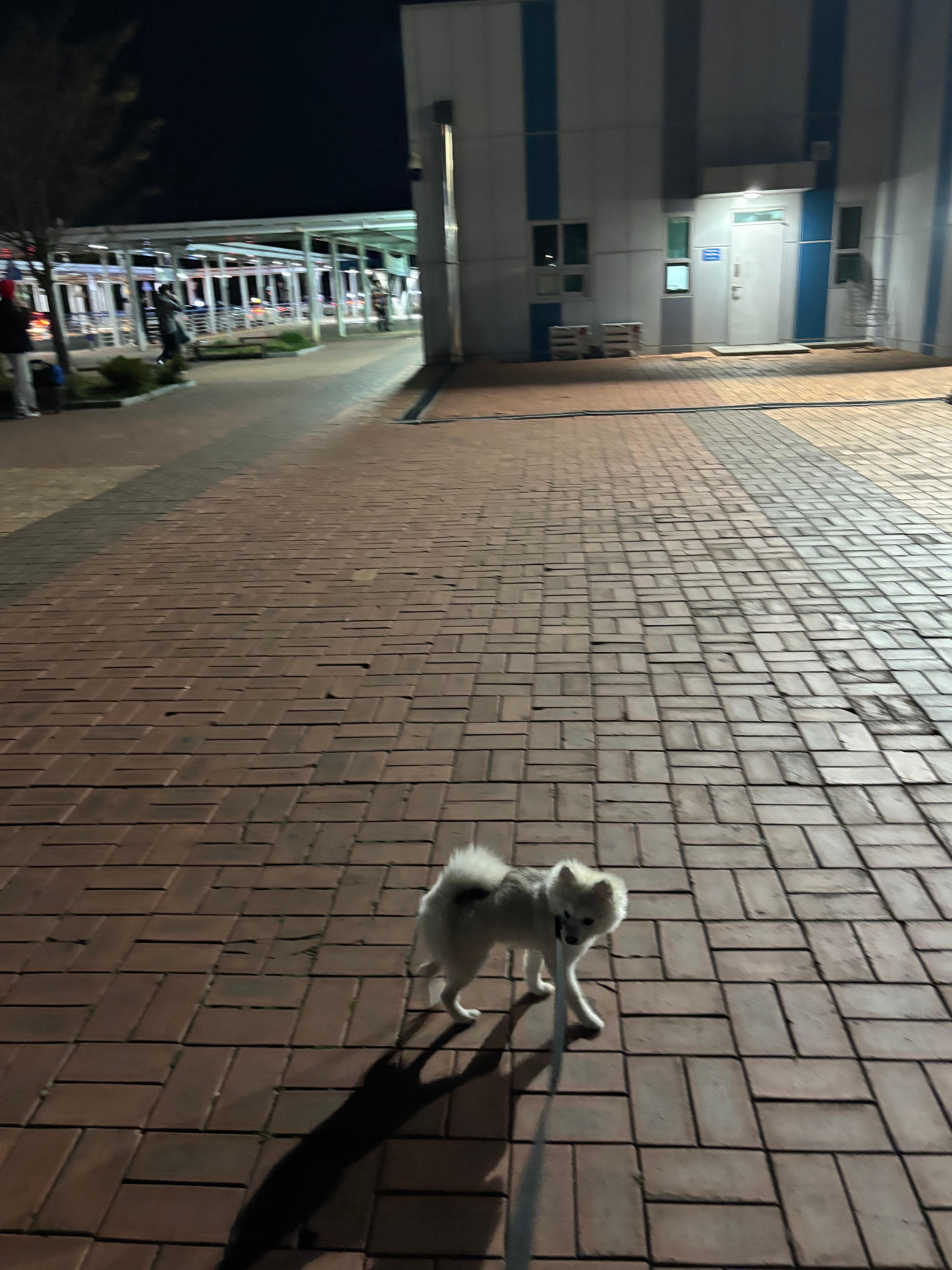 역 앞이 조용해서 천천히 걸으며 긴장을 풀 수 있었고, 수호는 뭔가 신이 난 얼굴이더라고요 🐶