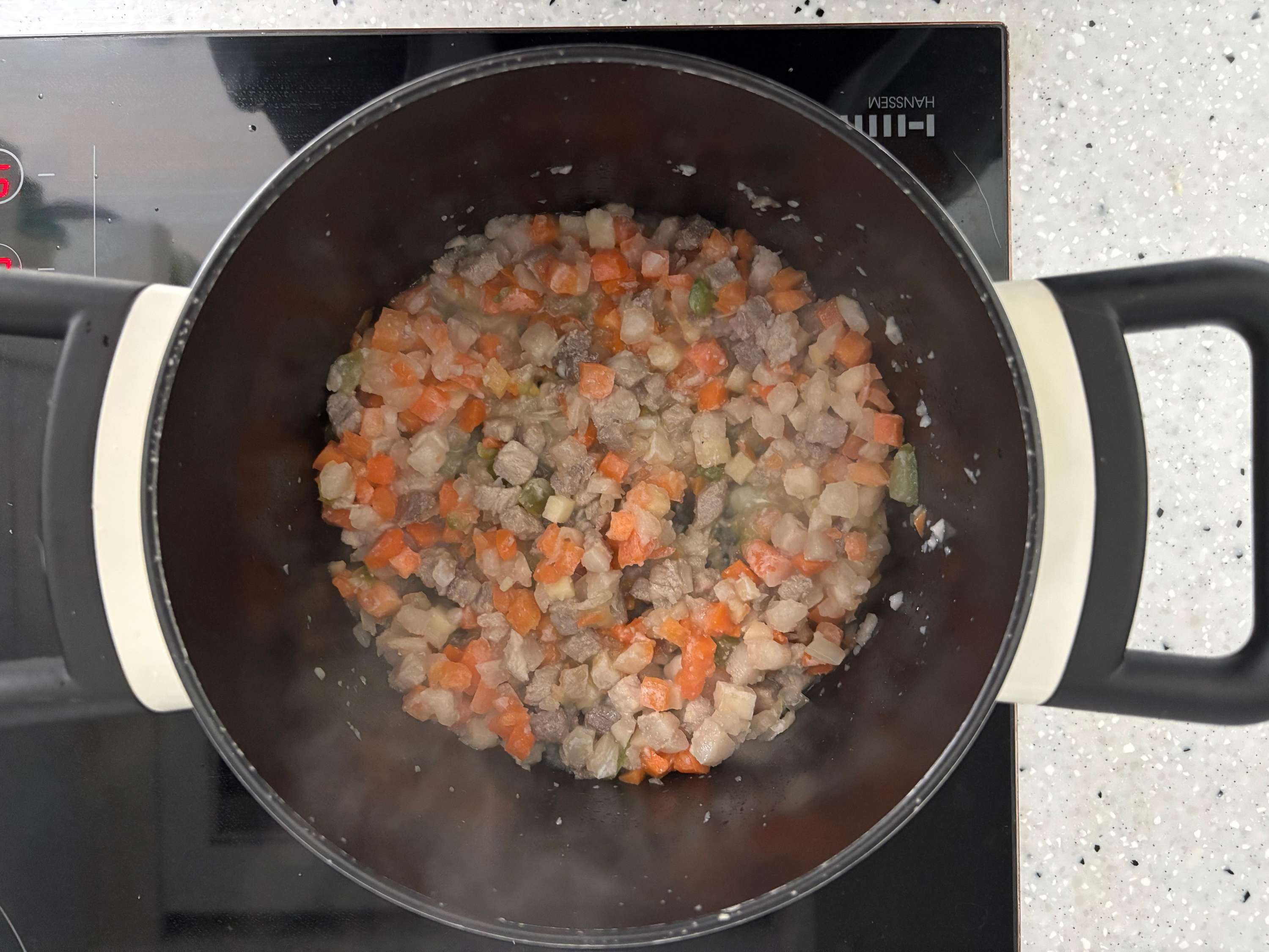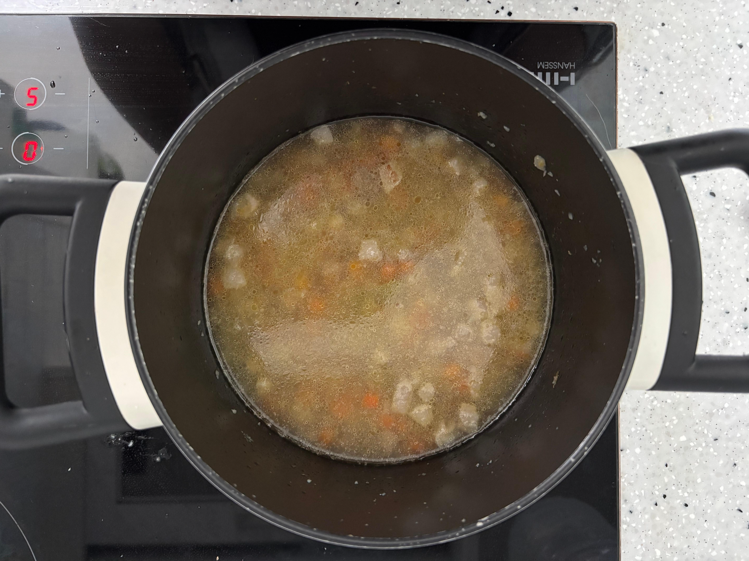 채소가 익으면 물 반 컵 정도 넣고 한소끔 끓여줍니다.