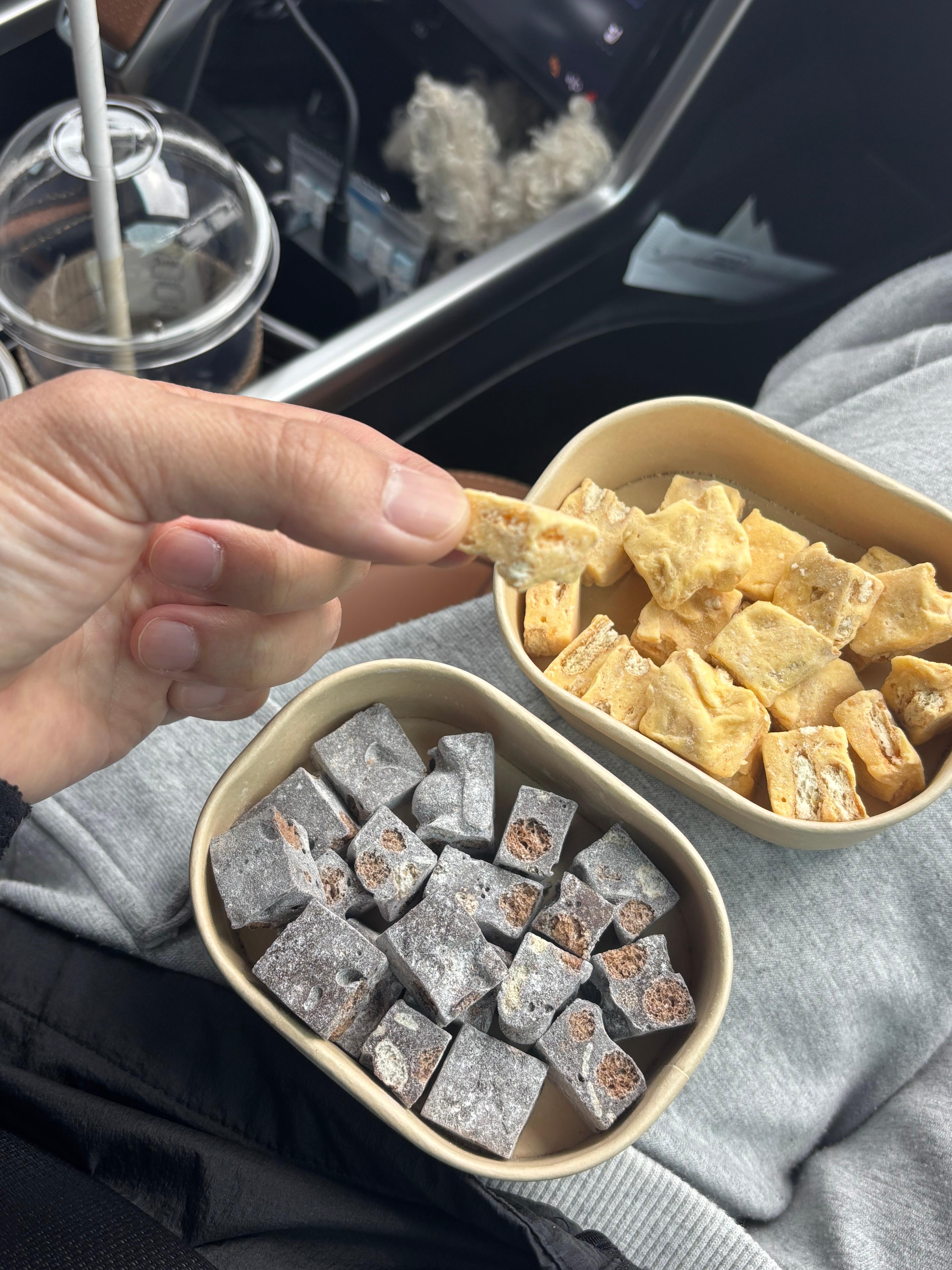 근처에서 판매 중이던 쫀득한 쿠키를 구매해 차량에서 간식으로 먹으면서 귀가했어요.