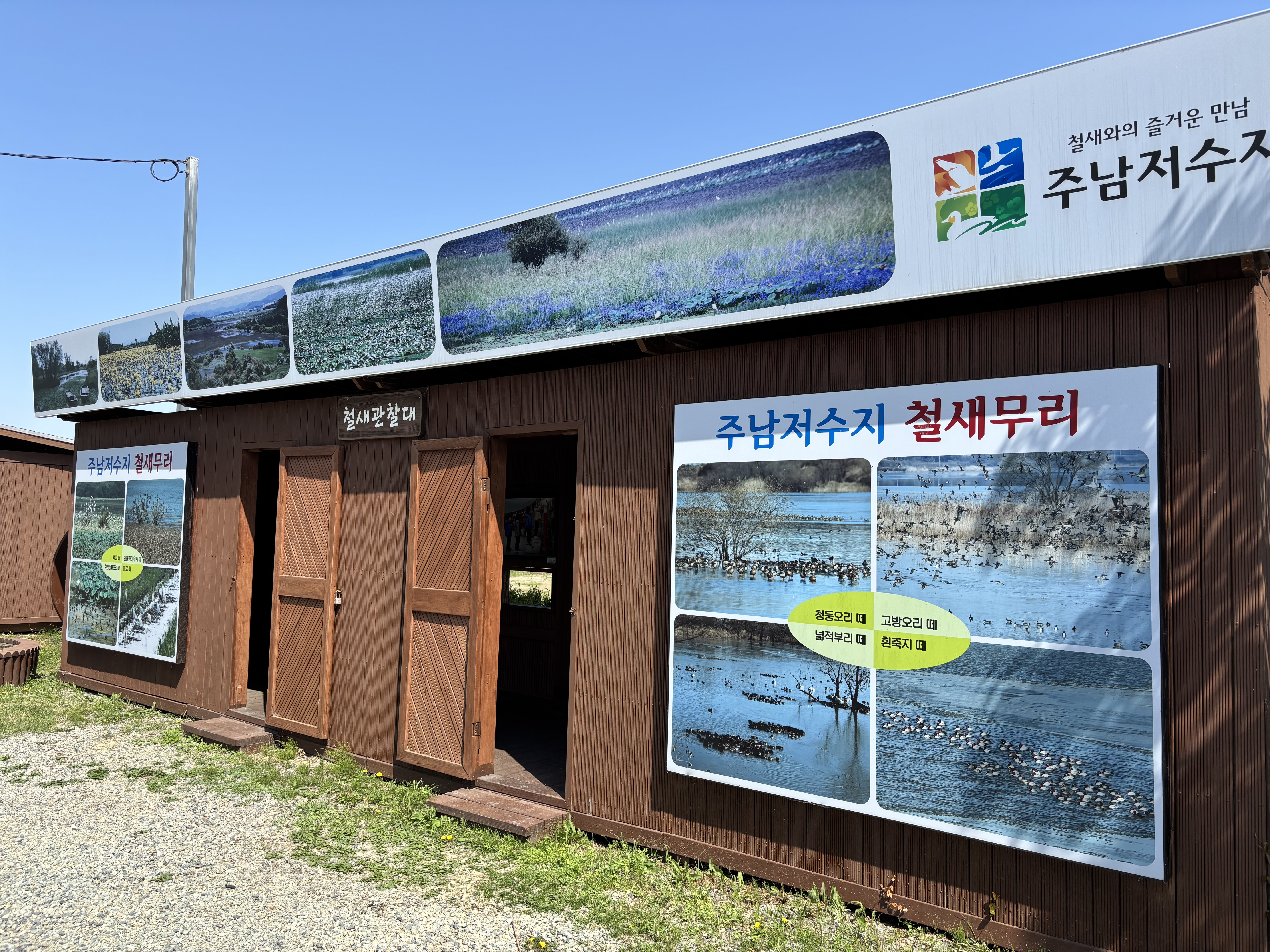 주남저수지에는 철새관찰대, 철새 사진전시관 등 볼거리가 많아요.