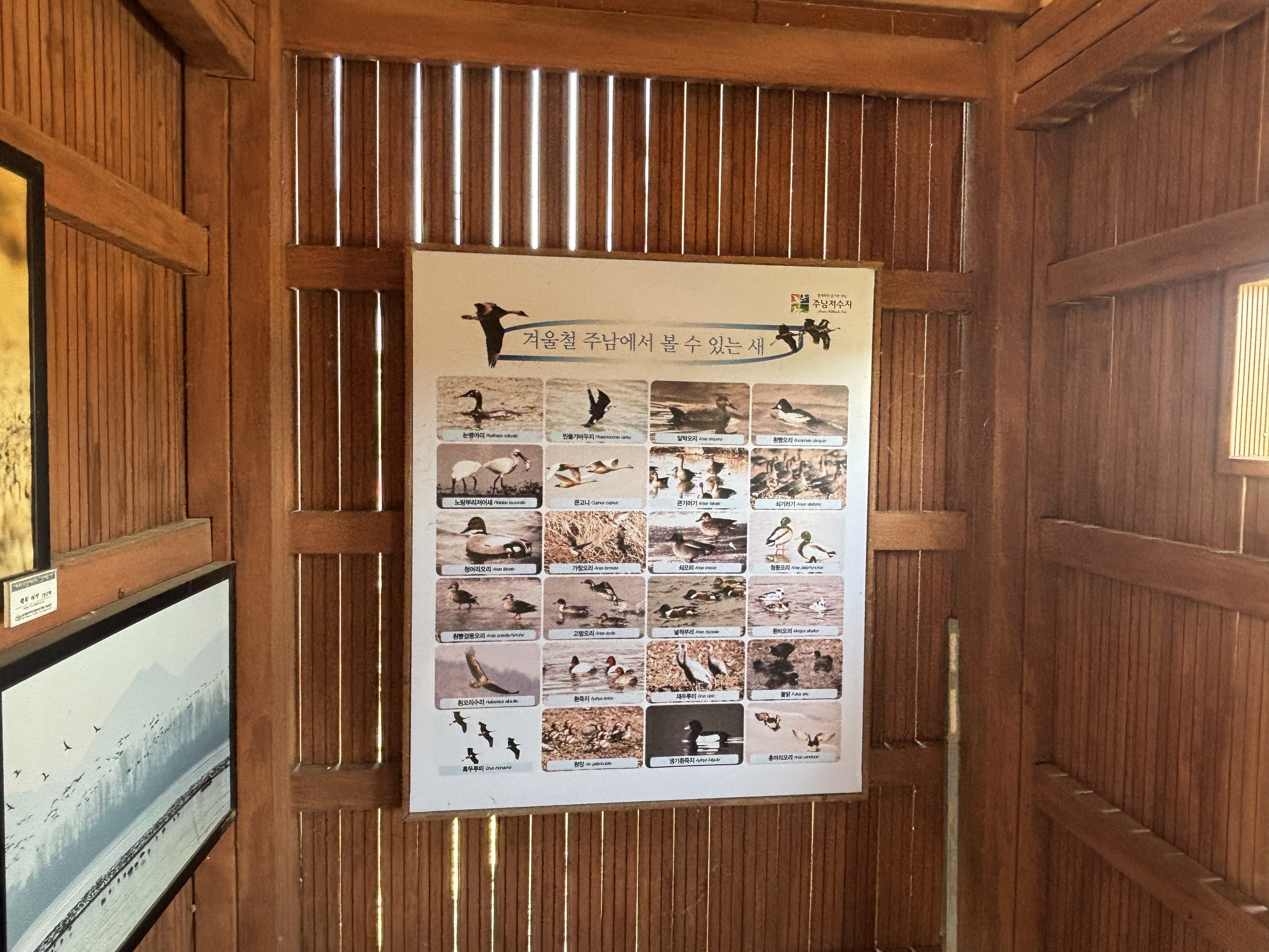 주남저수지에는 철새관찰대, 철새 사진전시관 등 볼거리가 많아요.