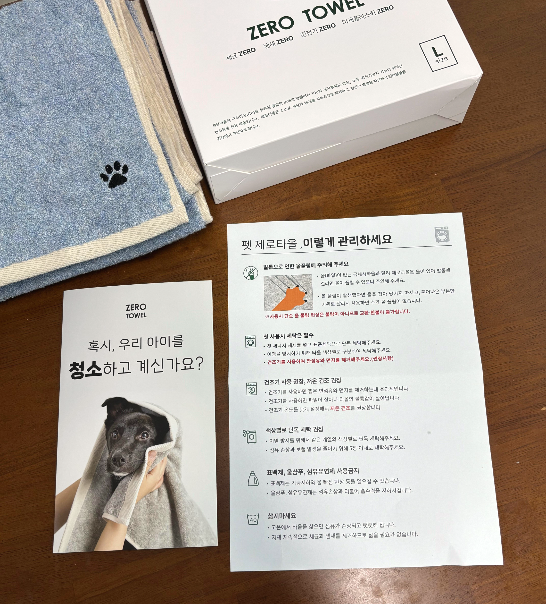 오늘은 얼마 전 언박싱한 반려견 전용 ‘제로타월’ 사용 후기를 소개해드릴게요!