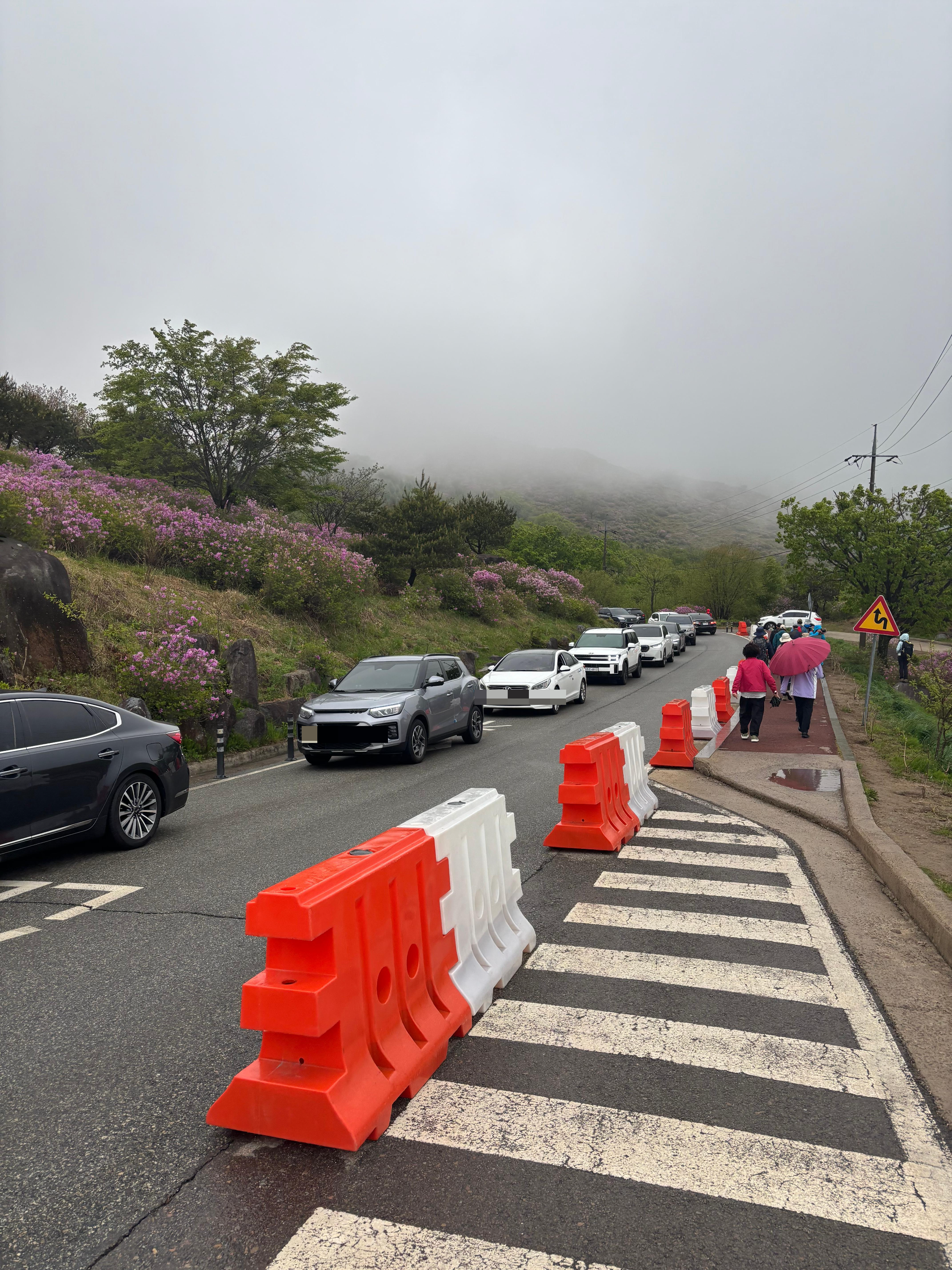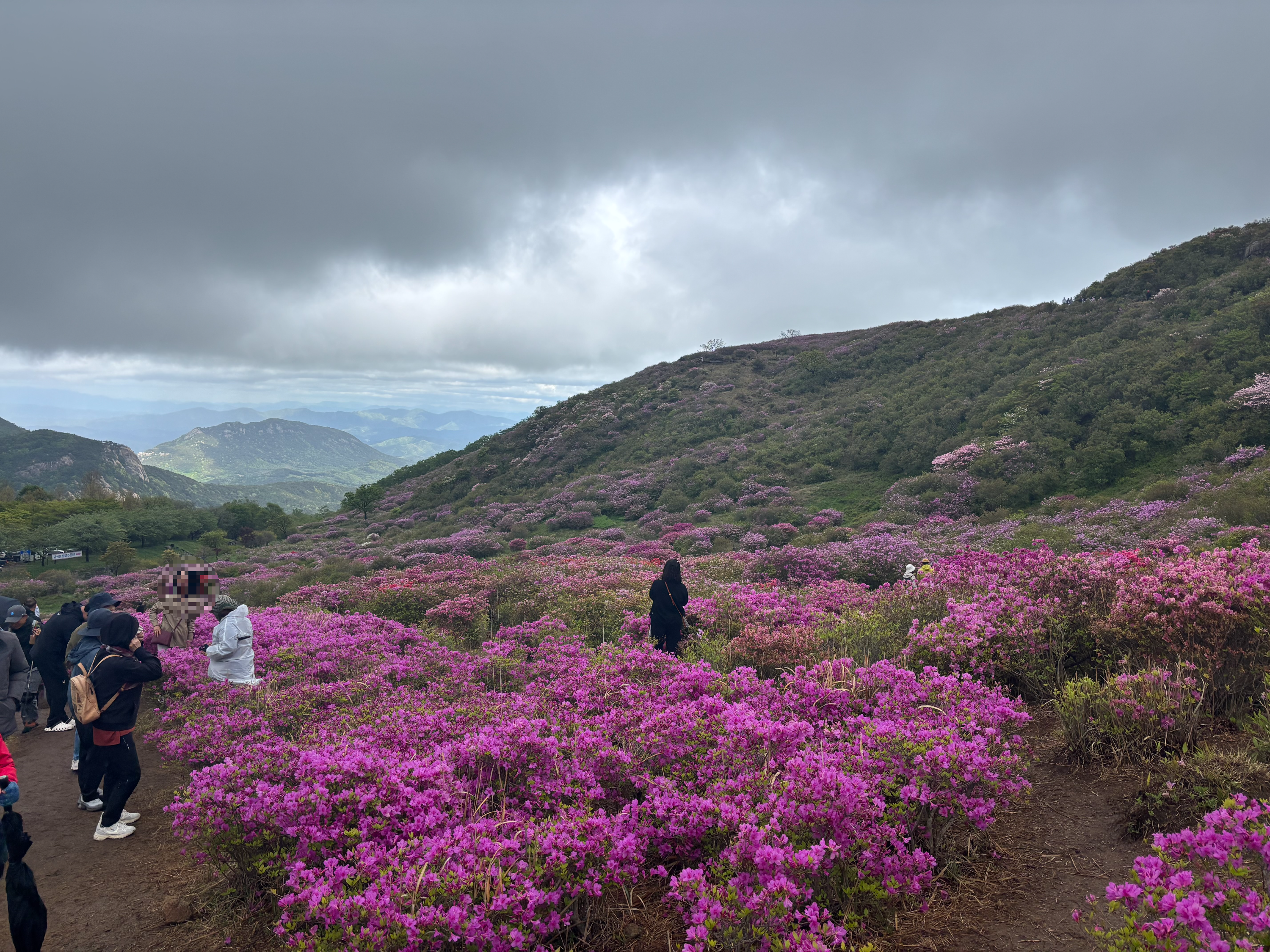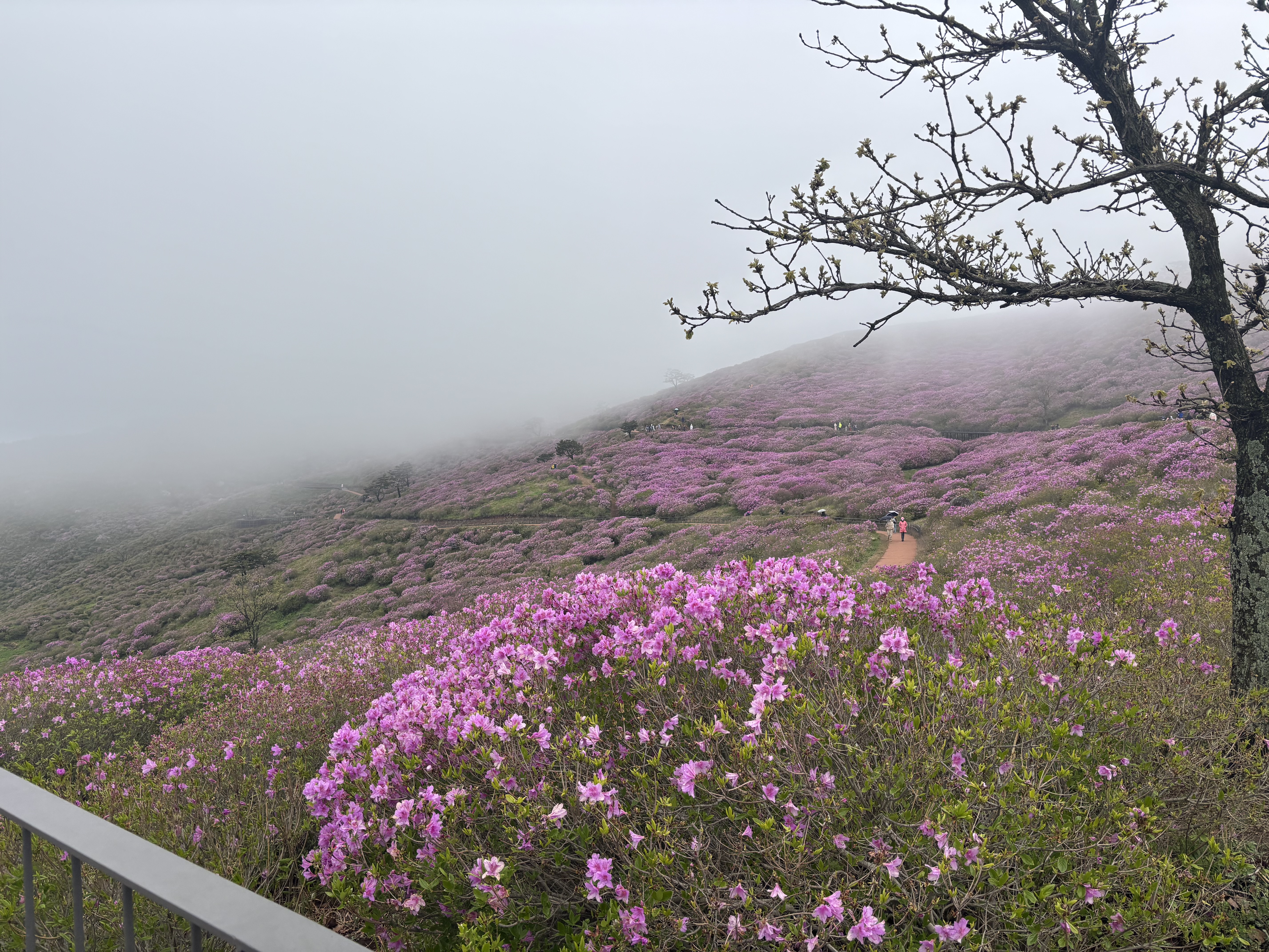 비 오는 날 방문했지만, 흐린 하늘과 철쭉의 선명한 색이 오히려 조화를 이루며 더 드라마틱한 풍경을 만들어줬어요.