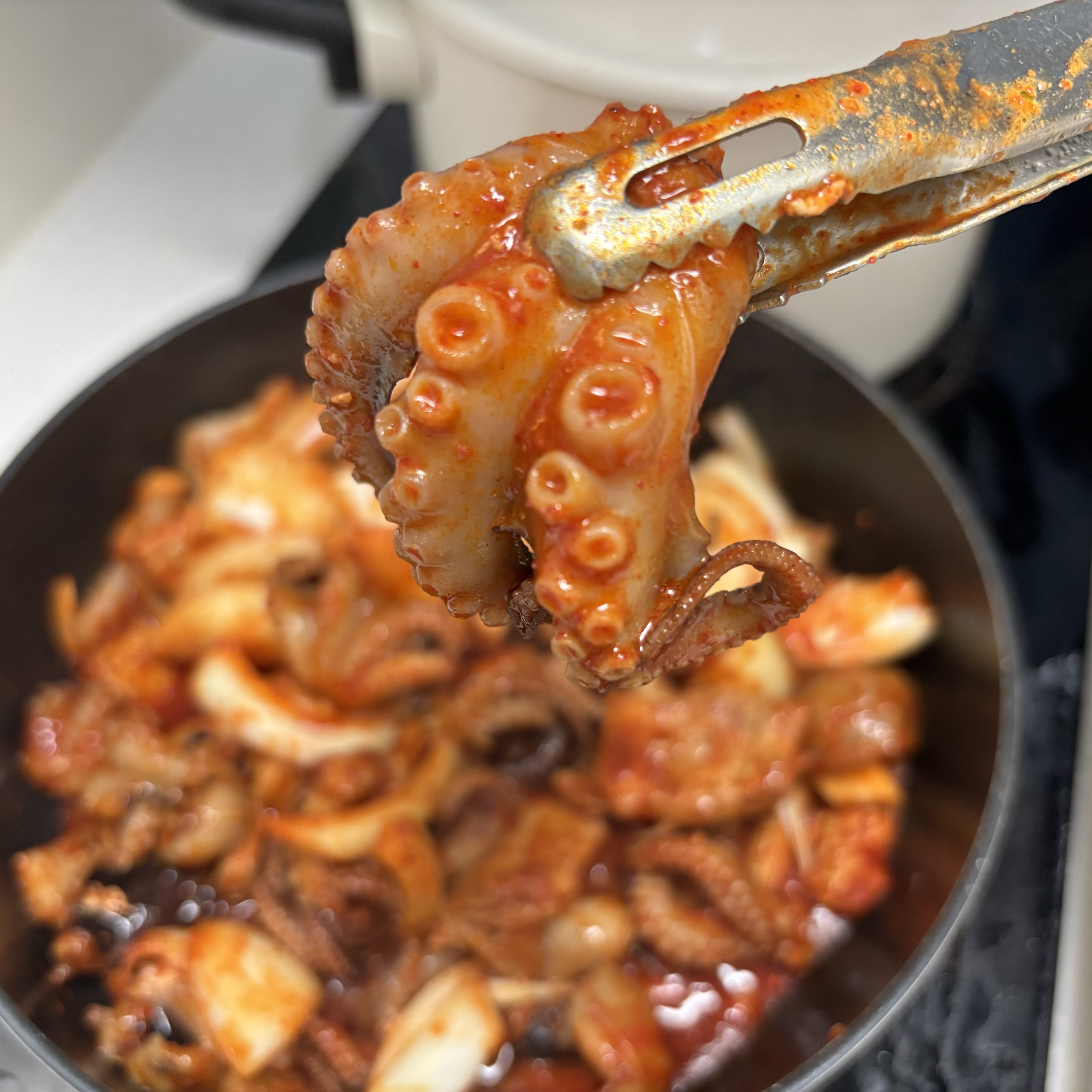 • 양념된 주꾸미 (보통 매운맛 선택)