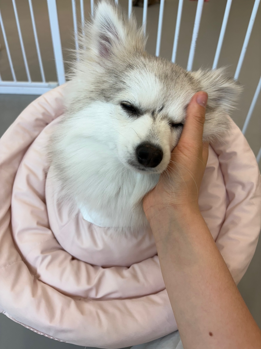 방석, 사료, 한입 간식 등 평소에 사용하던 것들을 챙겨가면 선생님들이 아이 방에 직접 함께 넣어주십니다.