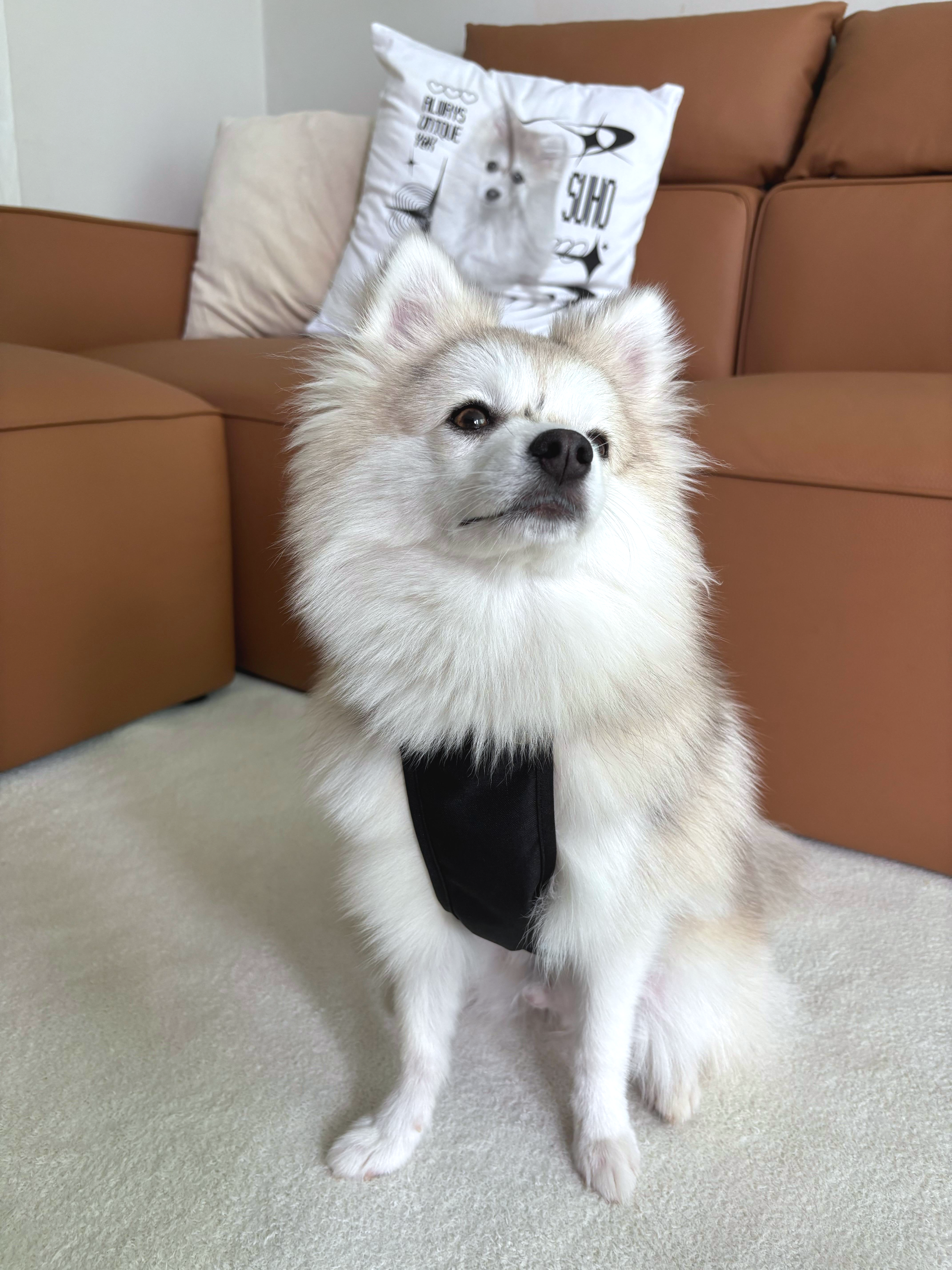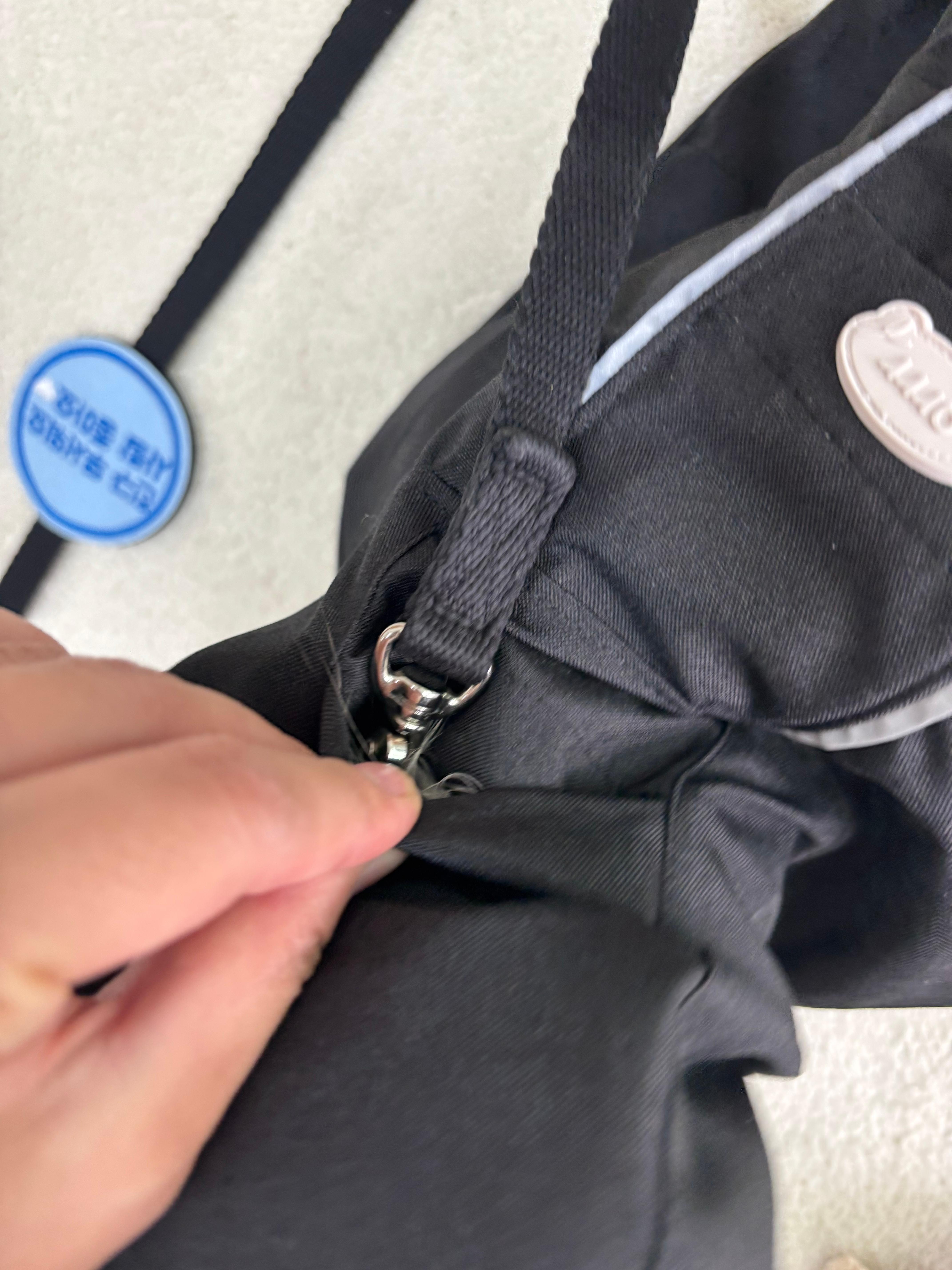 배를 감싸는 밴드는 조절 가능하고 똑딱이+버클+ 뒷다리 끈까지 있어 흔들림 없이 착용 가능했어요.