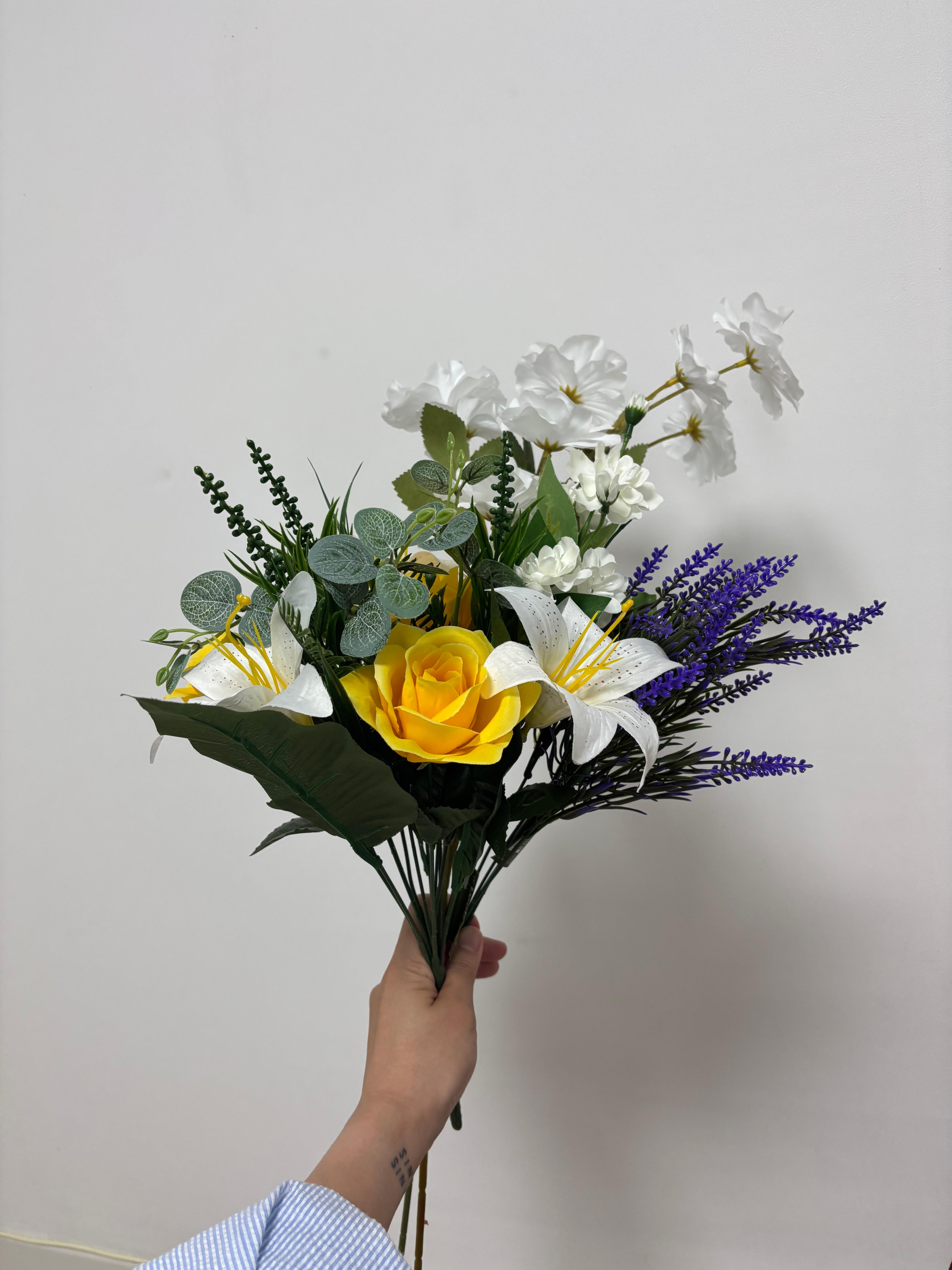 올여름휴가에는 특별한 아이템을 하나 챙겨보려고 해요. 바로 식전영상용 셀프 조화 부케!결혼을 준비하면서 식전영상에 들어갈 사진이나 영상도 신경 써야 하더라고요. 그래서 미리 감성샷을 찍어두면 좋을 것 같아 직접 만들어보기로 했어요.🌼 모두 다이소에서 준비한 조화 부케조화는 전부 다이소에서 구매했고 꽃 종류와 가격은 아래와 같아요!노란 장미 & 백합 혼합 조화 – 3,000원흰색 꽃송이 조화 – 2,000원하얀 작약 스타일 조화 – 1,000원라벤더 조화 – 1,000원꽃다발용 조화 니퍼 – 3,000원👉 총 비용은 약 10,000원으로 완성!📷 조화 니퍼로 줄 길이를 맞춰 자르고 조화의 위치를 조정해서 손에 들었을 때 가장 예쁜 각도를 찾습니다.테이프나 리본으로 고정해 주면 완성이에요.생화보다 훨씬..